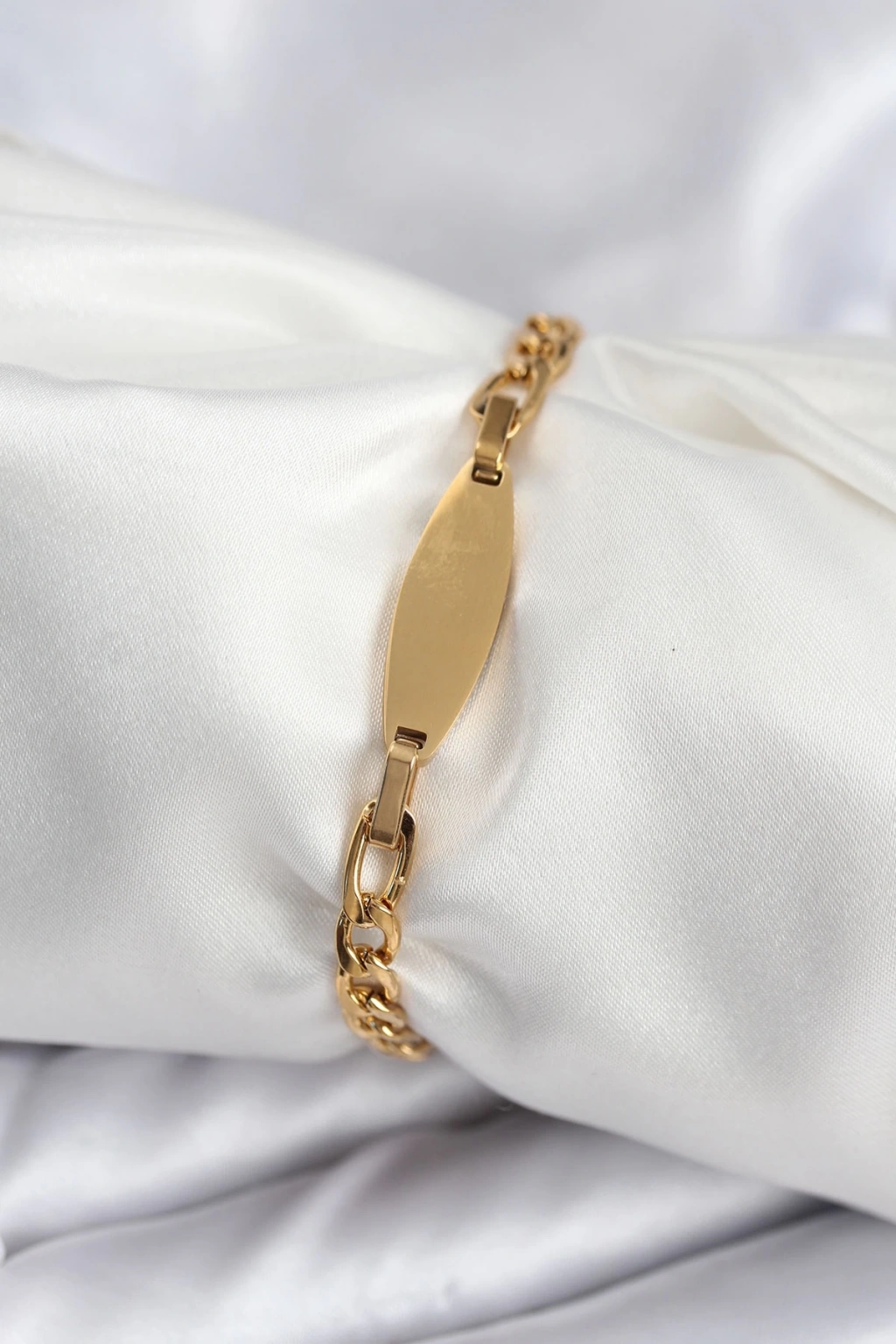316L Çelik Gold Renk Oval Yazı Yazmaya Uygun Kadın Bileklik