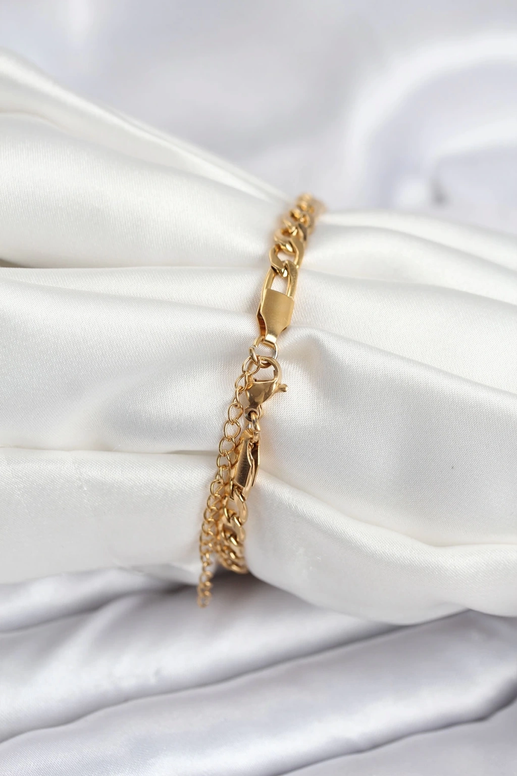 316L Çelik Gold Renk Ezme Zincir Model Kadın Kelepçe Bileklik