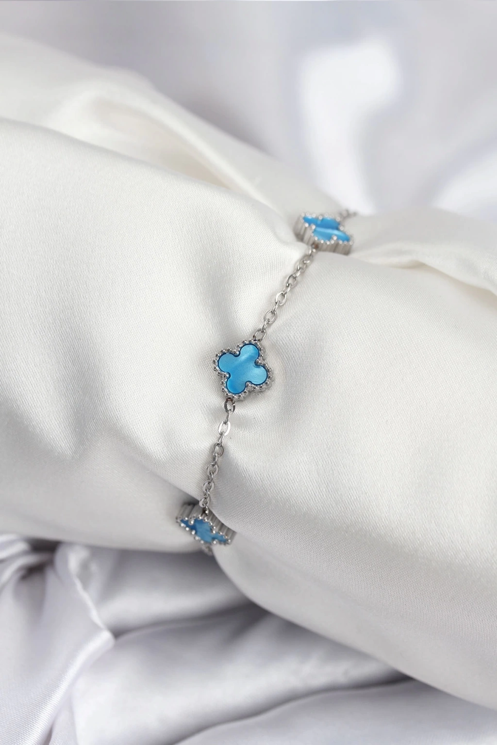 316L Çelik Gümüş Renk Buz Mavisi Baby Boy Yonca Kadın Bileklik