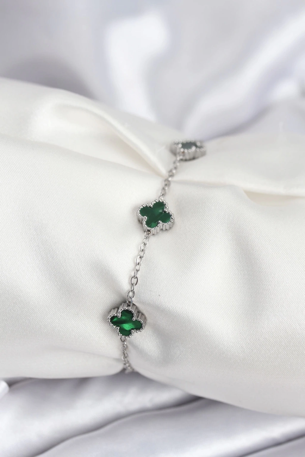 316L Çelik Gümüş Renk Yeşil Baby Boy Yonca Kadın Bileklik