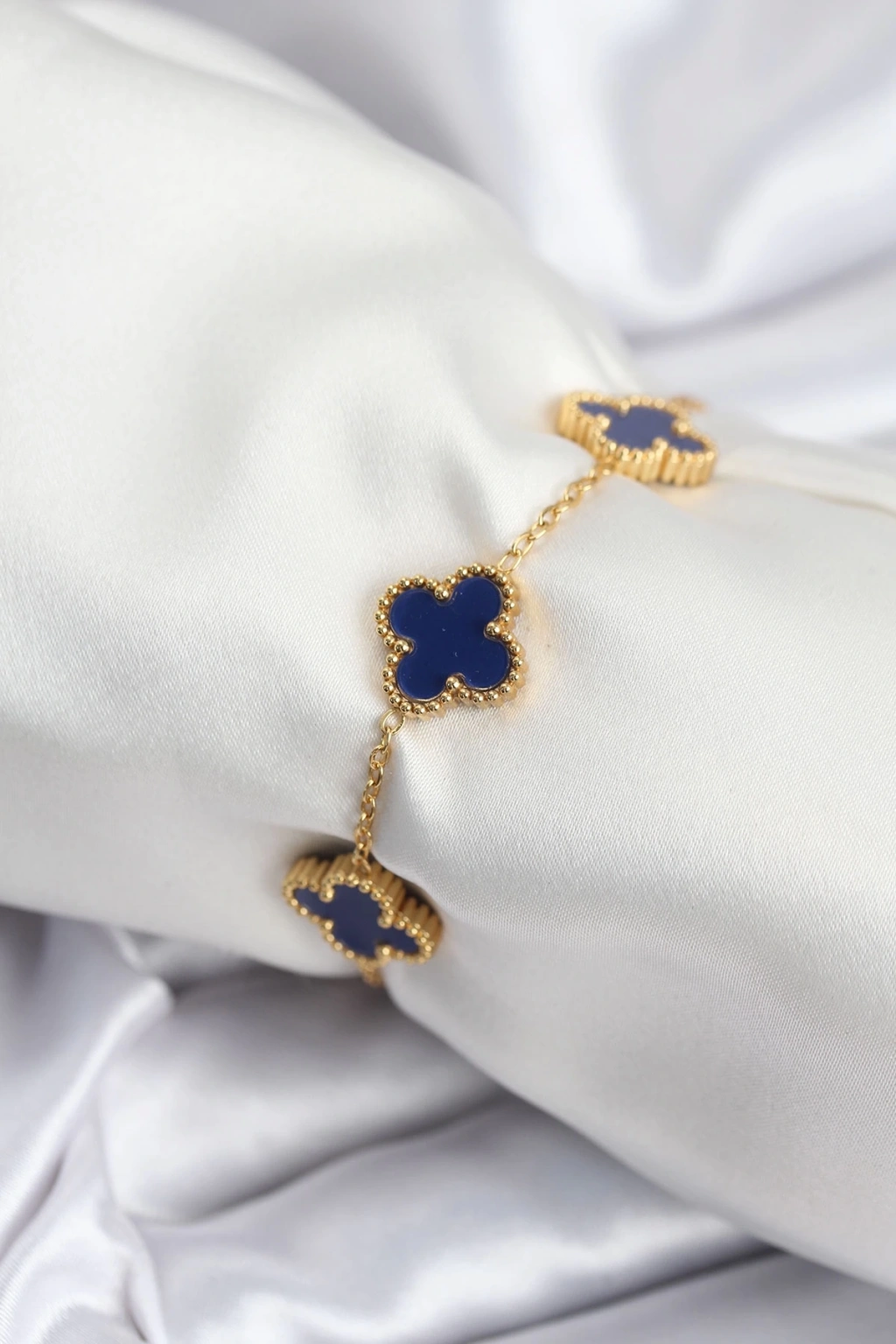 316L Çelik Zincir Gold Renk Lacivert Yonca Kadın Bileklik
