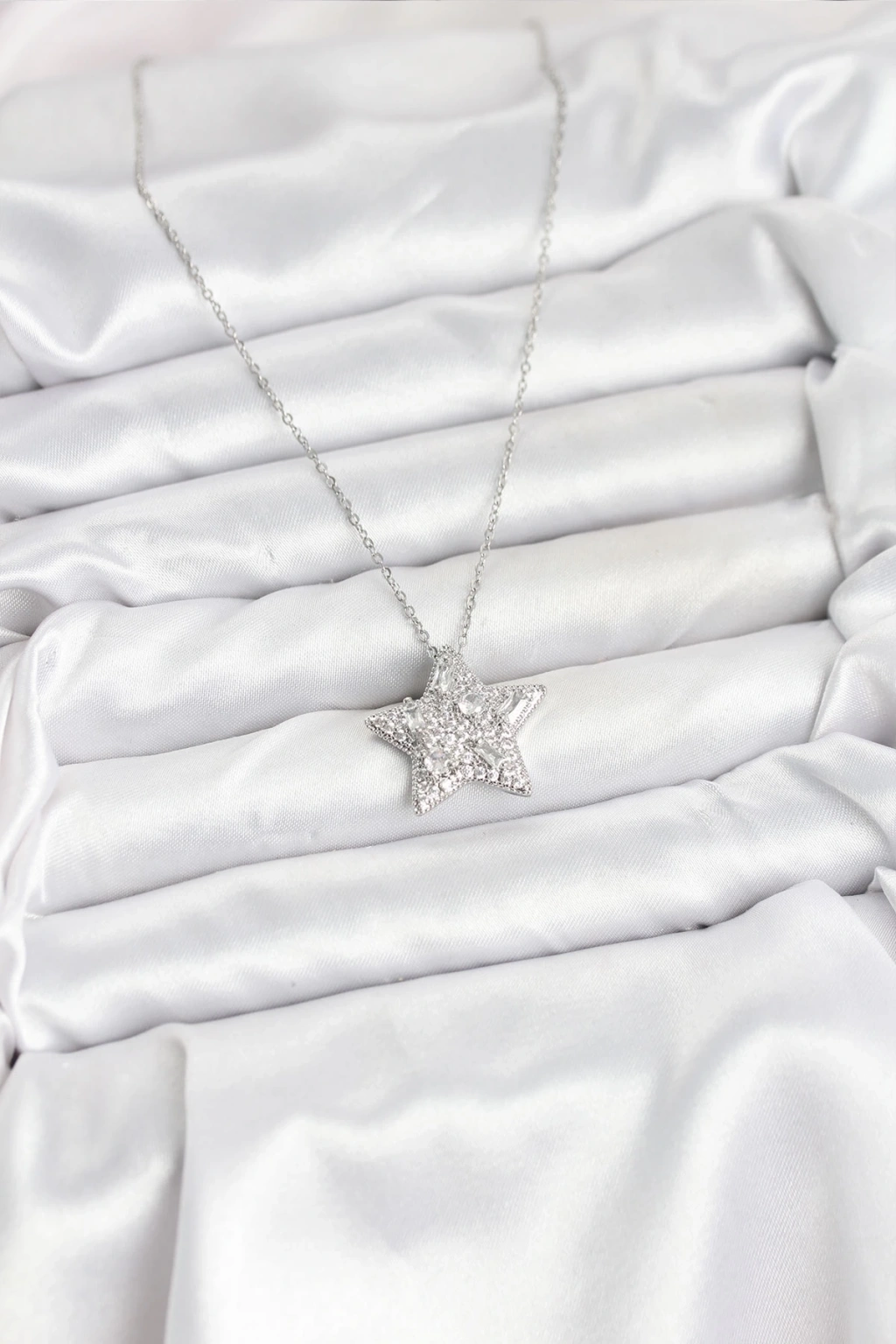 316L Çelik Zincir Gümüş Renk Yıldız Model Kadın Kolye