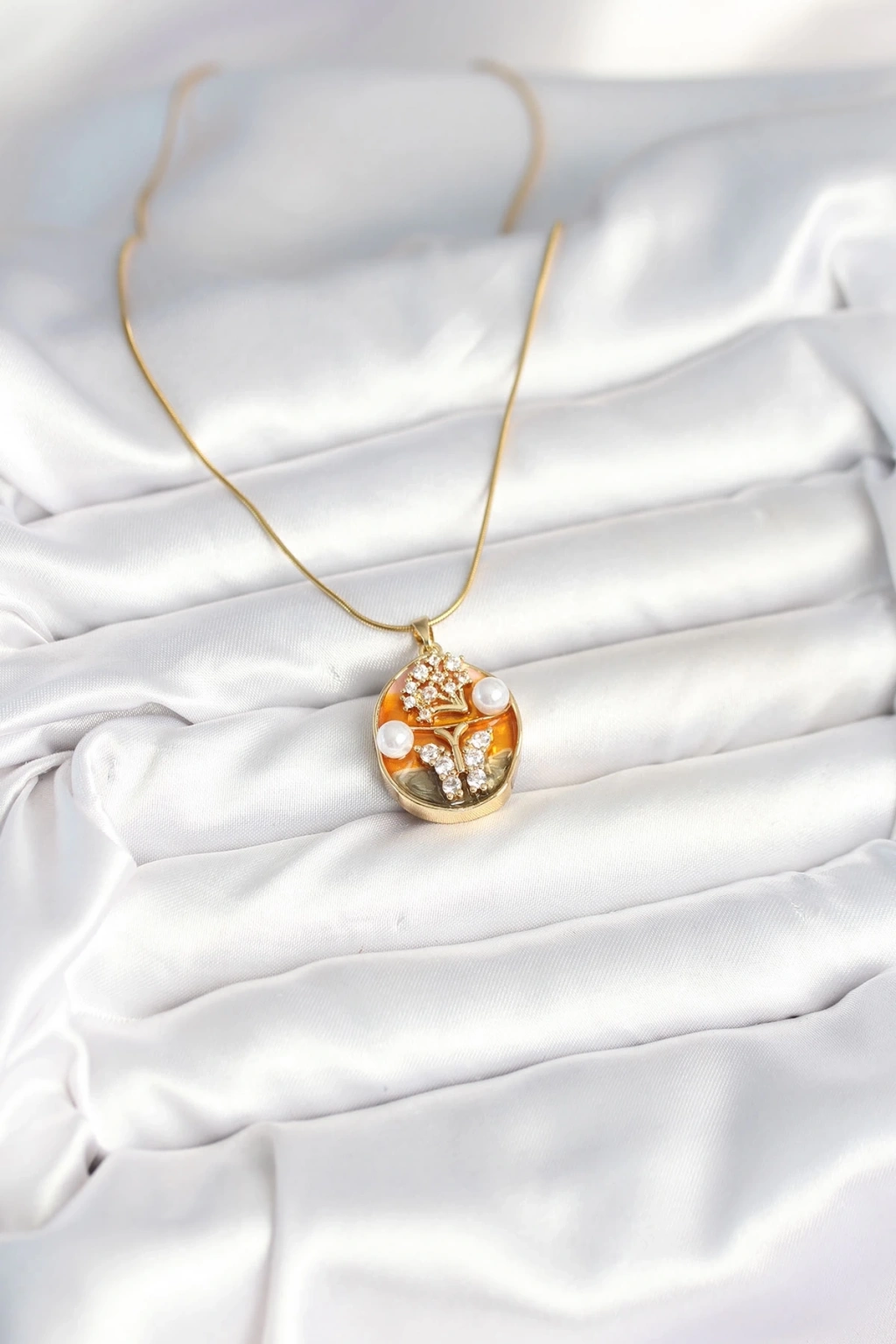 316L Çelik Zincir Kelebek Model Sanatsal Portre Kadın Kolye