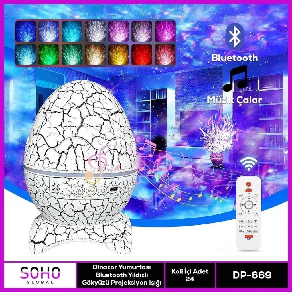 Robot Projeksiyon Gece Lambası Hoparlörlü Şarjlı Yıldızlı Gökyüzü Temalı Led Projeksiyon Lambası