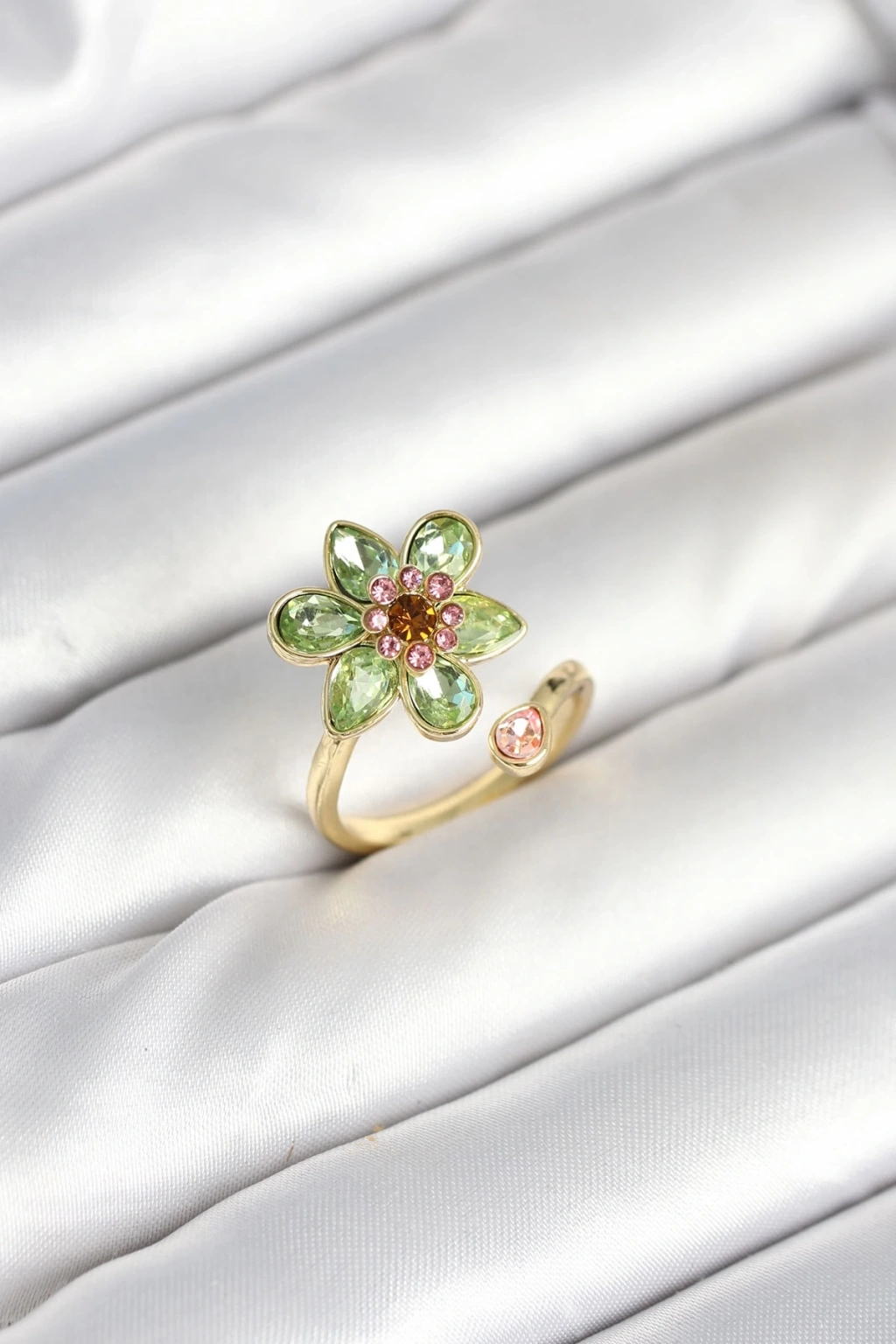 Çiçek Model Yeşil Pirinç Gold Renk Yüzük