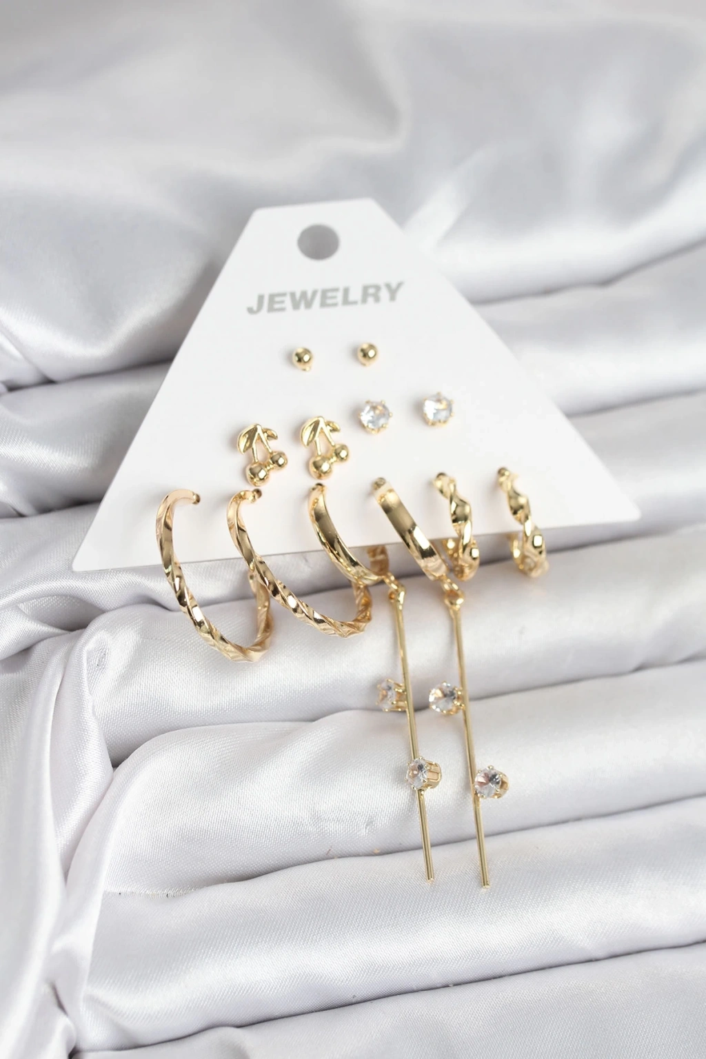 Gold Renk 6 Çift Pirinç Kadın Küpe Seti
