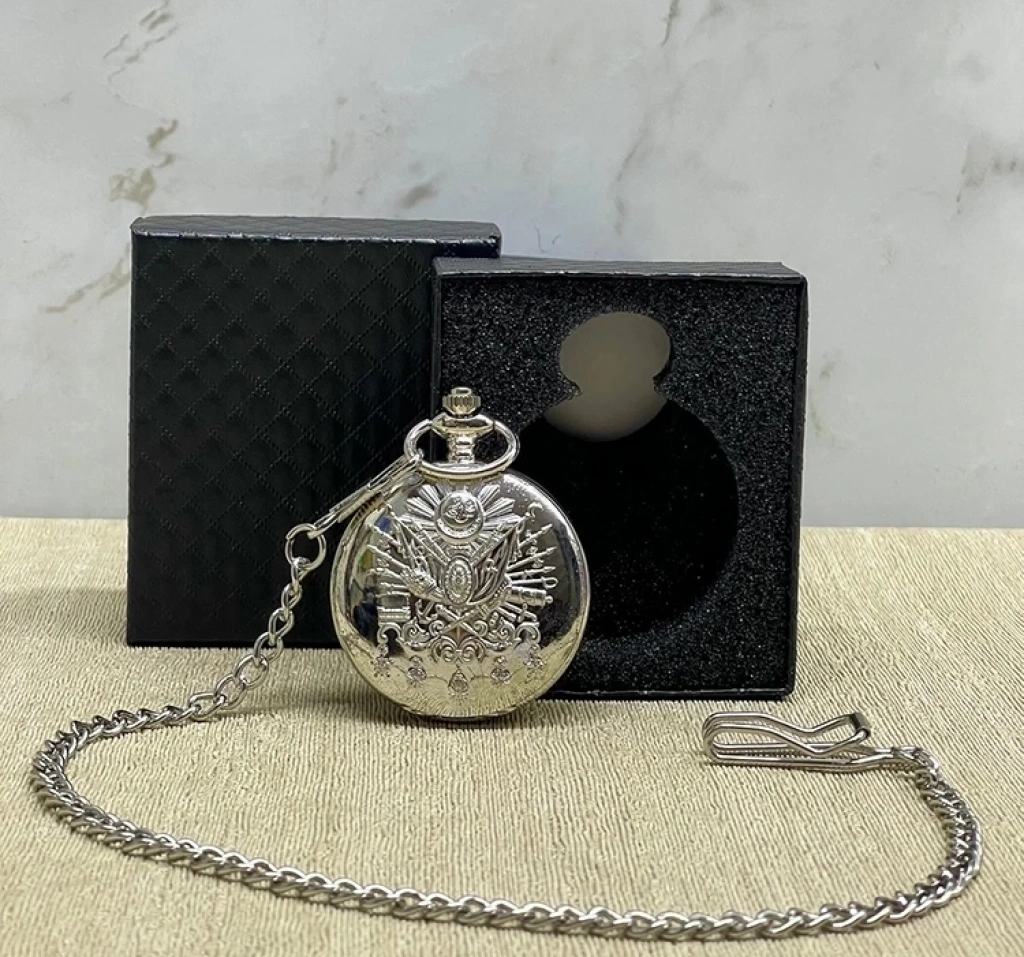 Özel Kutulu Osmanlı Devlet Arması Gümüş Köstekli Saat Alk4665 Ürün Ölçüleri 4*5 Cm