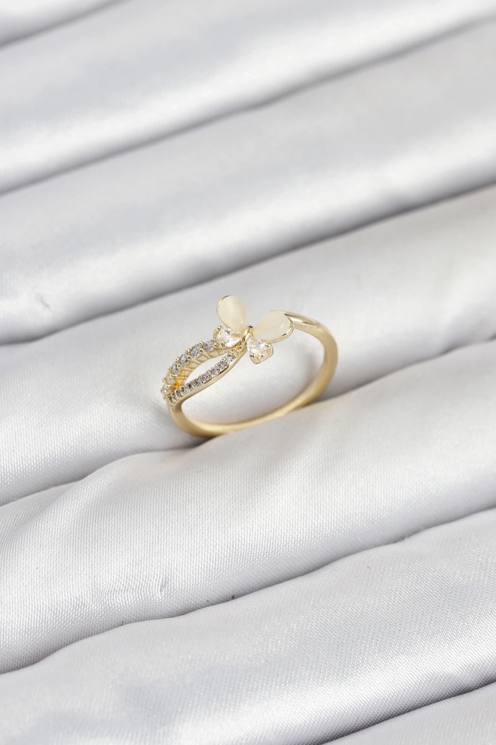 Pirinç Gold Renk Kelebek Zirkon Taşlı Kadın Yüzük