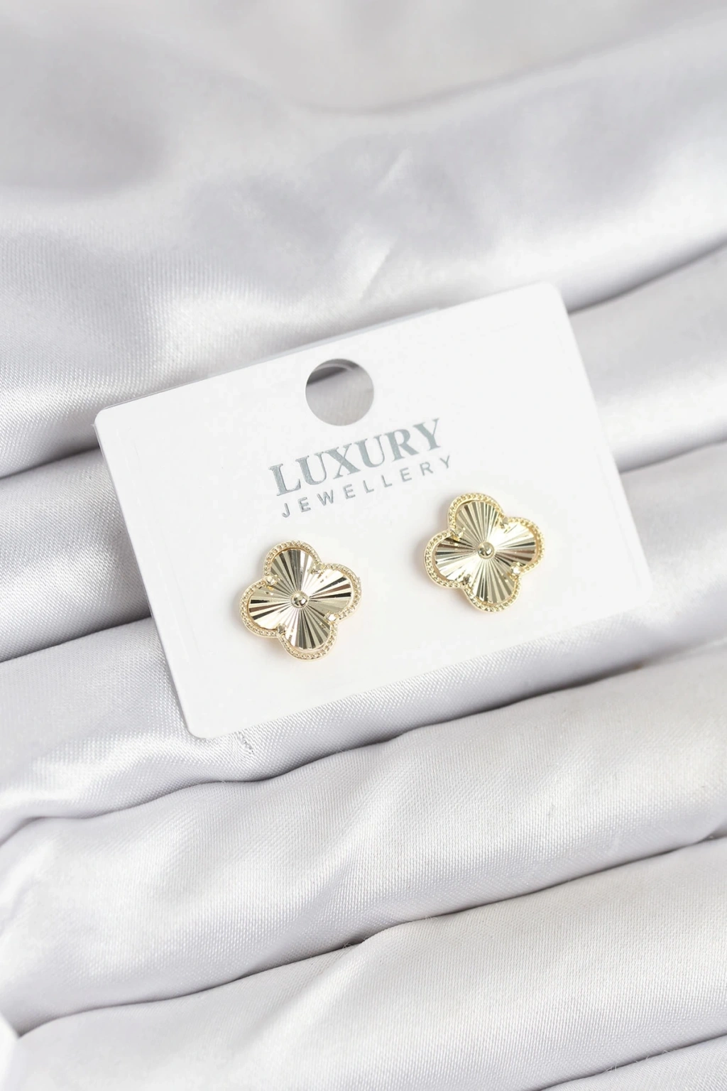 Pirinç Gold Renk Tekli Yonca Kadın Küpe