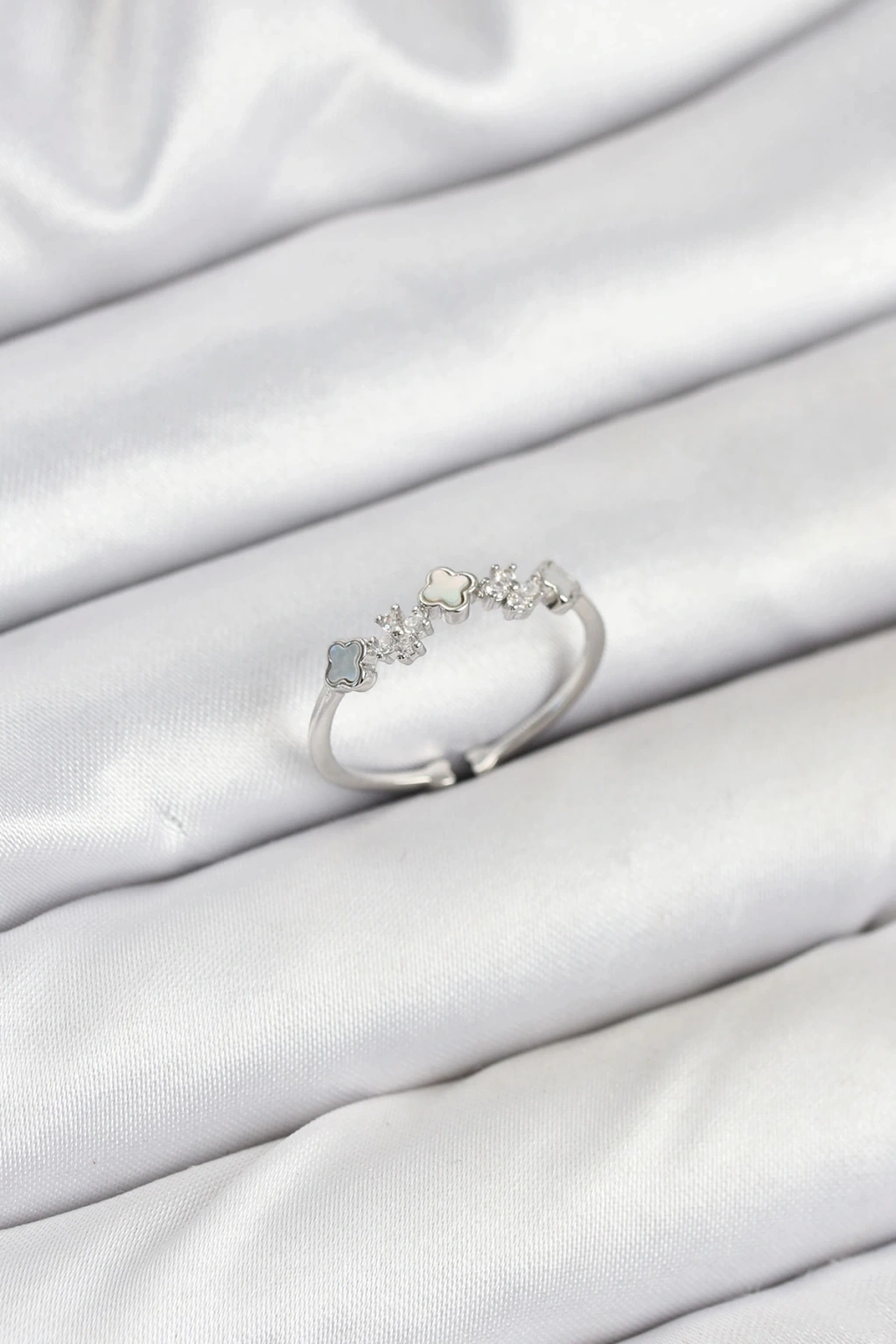 Pirinç Gümüş Renk Minimal Yonca Detaylı Kadın Yüzük
